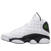 Materials: The upper of the 'Love and Respect' Air Jordan 13 Retro is crafted from premium leather and synthetic materials. The majority of the upper is a crisp white leather that provides a clean, classic look. The toe box and quilted side panels feature this smooth leather, ensuring durability and a sleek appearance.