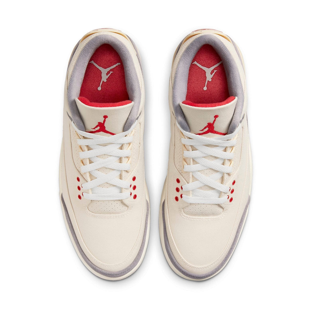 Midsole: The midsole is rendered in a clean white, which contrasts elegantly with the muslin upper. It features the visible Air-Sole unit in the heel, ensuring excellent cushioning and comfort. The midsole design maintains the classic Air Jordan 3 silhouette while providing a sleek and modern look.
